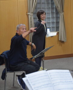 写真:パルナソス・メサイア合唱団を指導する鏡谷明夫さん(左)、林裕美子さん